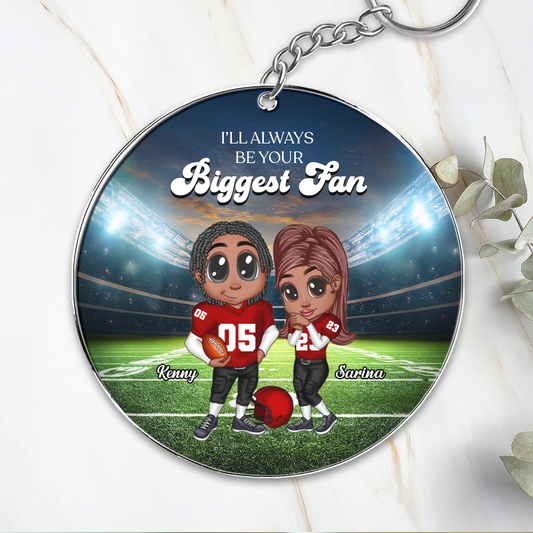 Always Your Biggest Fan American Football Couple Y2K Style Personalized Acrylic Keychain Ornament