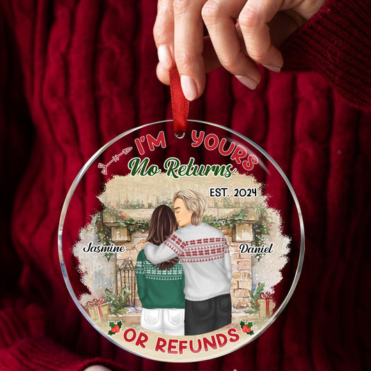 Forehead Kissing Couple I'm Yours No Returns Or Refunds - Personalized Circle Acrylic Ornament