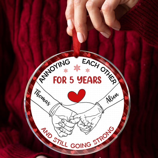 Holding Hands Old Couple Annoying Each Other - Personalized Circle Acrylic Ornament