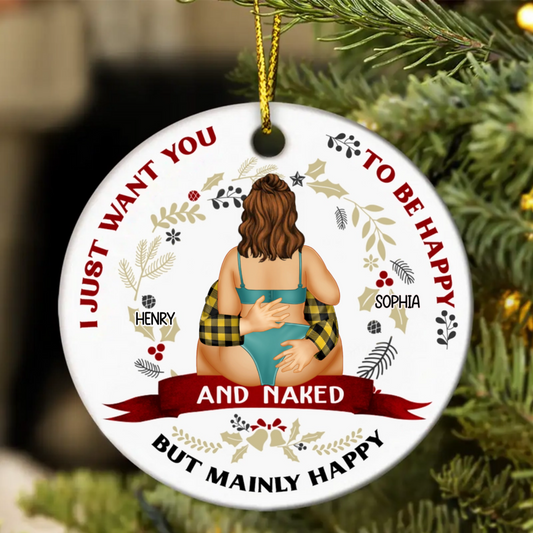 Christmas Couple I Just Want You To Be Happy - Personalized Circle Acrylic Ornament