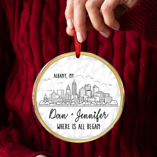 Couple City Skyline Where It All Began - Personalized Circle Acrylic Ornament
