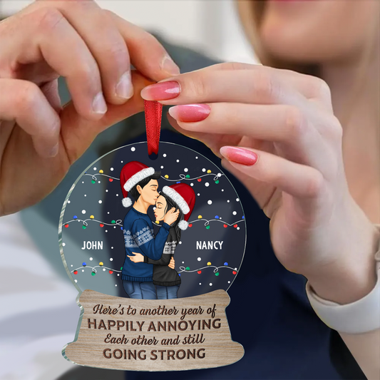 Couple Here's To Another Year Of Happily Annoying Each Other - Personalized Custom Shaped Acrylic Ornament