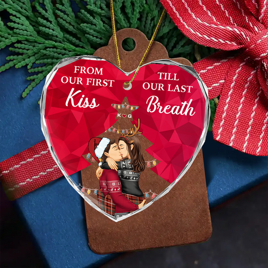 From Our First Kiss Till Our Last Breath Christmas Couple - Personalized Heart Shaped Acrylic Ornament