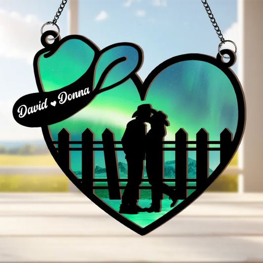 Couple - Cowboy And Cowgirl In Love - Personalized Window Hanging Suncatcher Ornament (HJ)