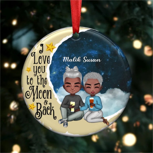 Couple - I Love You To The Moon And Back V2 - Personalized Circle Ornament