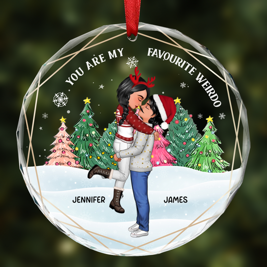 Christmas Couple Cartoon You Are My Favorite Weirdo - Personalized Circle Glass Ornament