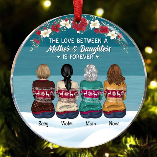 Family - The Love Between A Mother And Daughters Is Forever - Personalized Circle Ornament