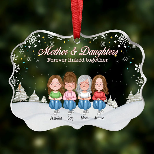 Family - Mother Daughters Forever Linked Together - Personalized Transparent Ornament (Ver 4)