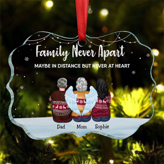 Family Never Apart - Personalized Acrylic Ornament - Christmas Gift Family Ornament For Dad, Mom, Siblings - Family Hugging