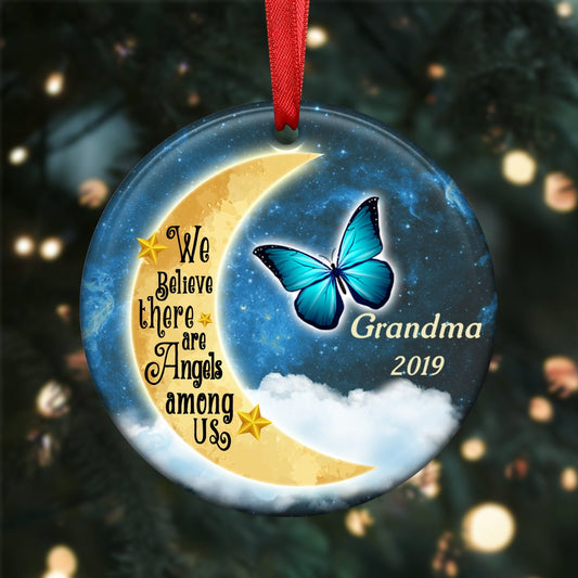 Memorial Gift - We Believe There Are Angels Among Us - Personalized Christmas Circle Ornament