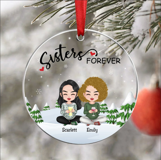 Besties - Sisters Forever - Personalized Transparent Ornament Ver 2