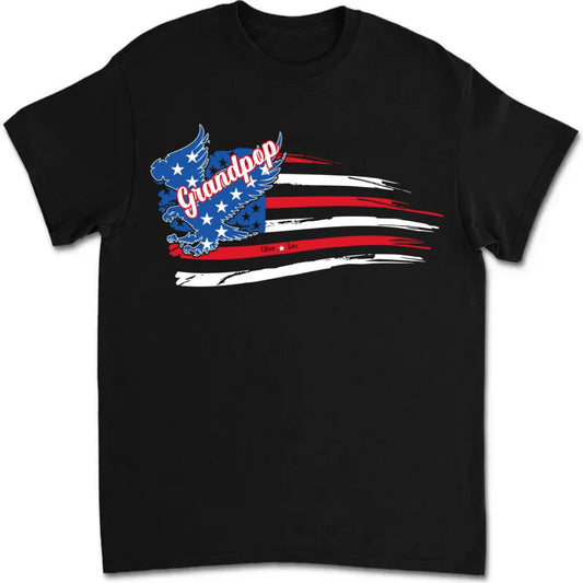 Grandpa - Papa with Grandkids Names 4th Of July - Personalized T-Shirt