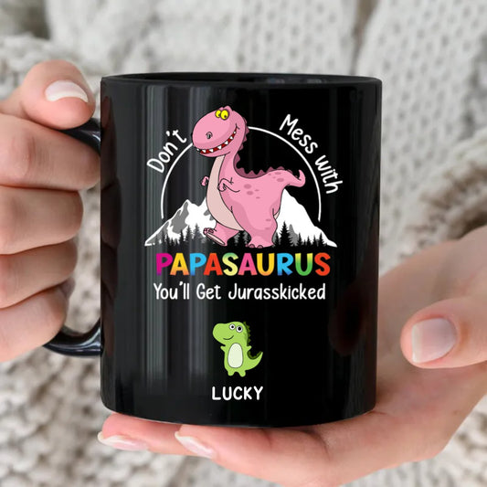 Family - Don't Mess With Papasaurus - Personalized Black Mug