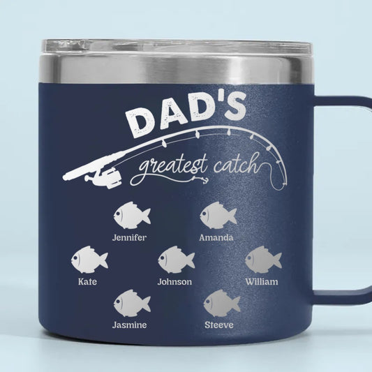 Family - Papa Fishing - Personalized Stainless Steel Tumbler With Handle