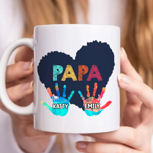 Family - Papa Grandkids Hand Print - Personalized Mug