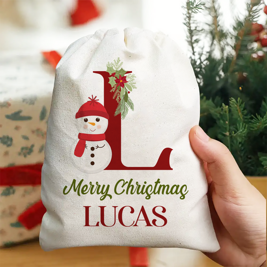 Monogram Snowman Merry Christmas - Personalized Favor Bag