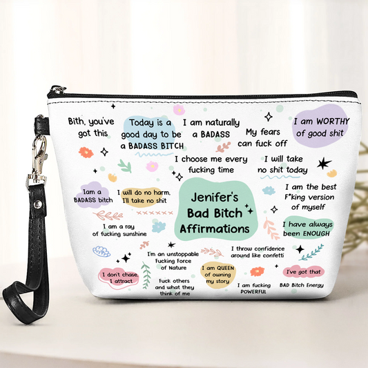 Bad B*Tch Affirmations - Funny Gifts For Coworkers, Friends, Self Gift - Personalized Cosmetic Bag