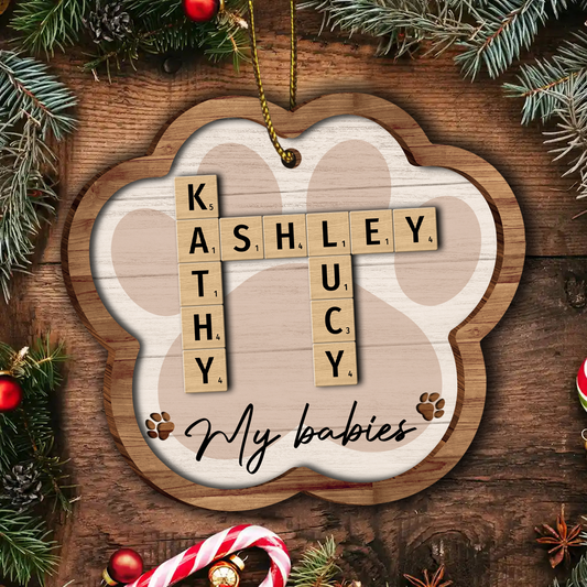 Pet Names Crossword Puzzle Art Personalized Paw Shaped Wooden Ornament [Can add up to 20 pet names]