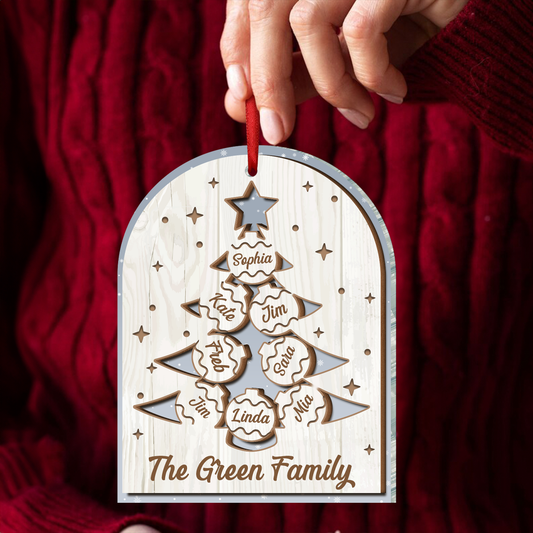 Family Name Christmas Tree - Personalized Wooden Ornament