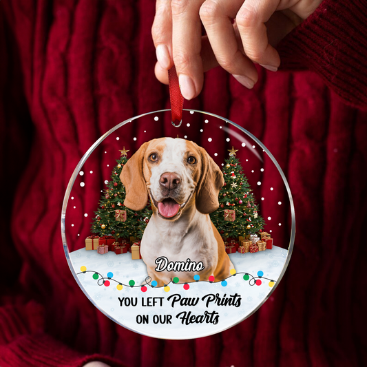 Custom Photo You Left Paw Prints Pet Memorial - Personalized Circle Acrylic Ornament