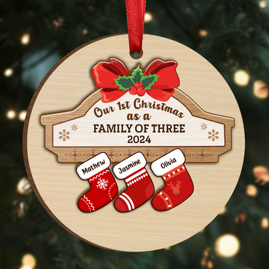 First Christmas As A Family Of Four Stocking Family - Personalized 2-Layered Wooden Ornament