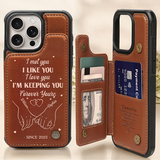 I Met You I Liked You I Love You - Personalized Leather Flip Wallet Phone Case
