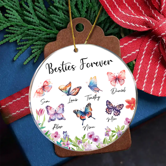 Besties Sisters Grandma Mom Beautiful Butterflies Personalized Circle Ornament