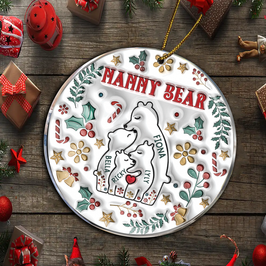 Christmas Mama Bear - 3D Inflated Effect Printed Ornament, Personalized Circle Acrylic Ornament