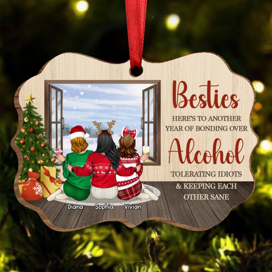 Bestie Keeping Each Other Sane - Bestie BFF Christmas Gift - Personalized Wooden Ornament