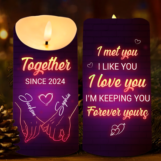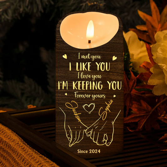 In Your Hand, I Found My Forever - Couple Personalized Custom LED Candle - Christmas Gift For Husband Wife, Anniversary