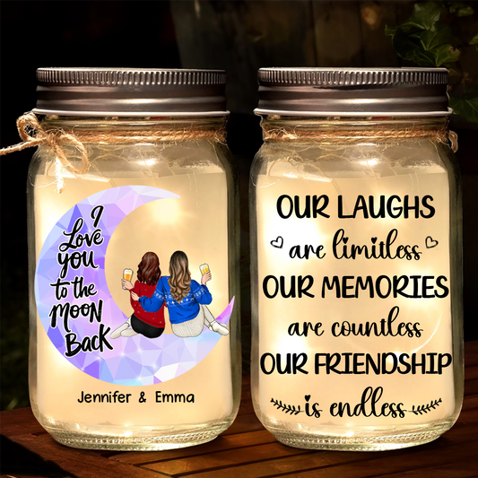 Besties I Love You To The Moon & Back - Personalized Mason Jar Light