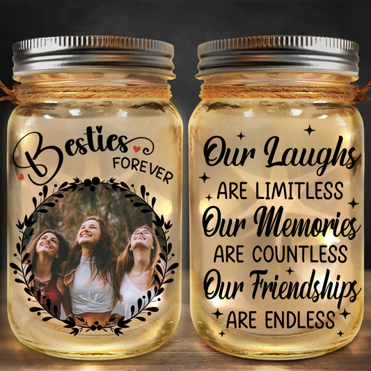 Custom Photo Our Memories Are Countless Our Friendship Is Endless - Personalized Mason Jar Light