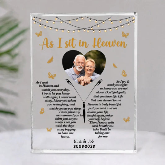 Memorial - Upload Image As I Sit In Heaven - Personalized Acrylic Plaque