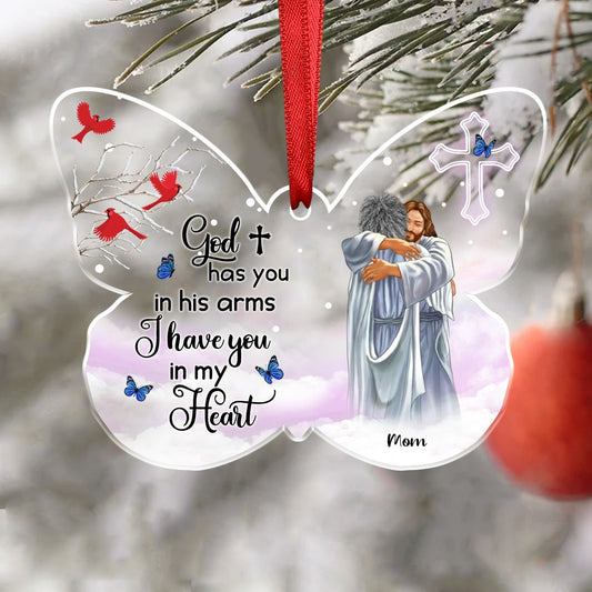 God Has You In His Arms I Have You In My Heart - Personalized Butterfly Acrylic Ornament