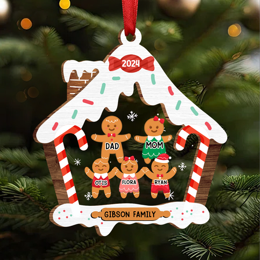 Gingerbread House Family With Pets Christmas - Personalized Acrylic Ornament
