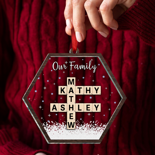 Family Crossword Puzzle Art Keepsake Christmas Personalized Acrylic Ornament