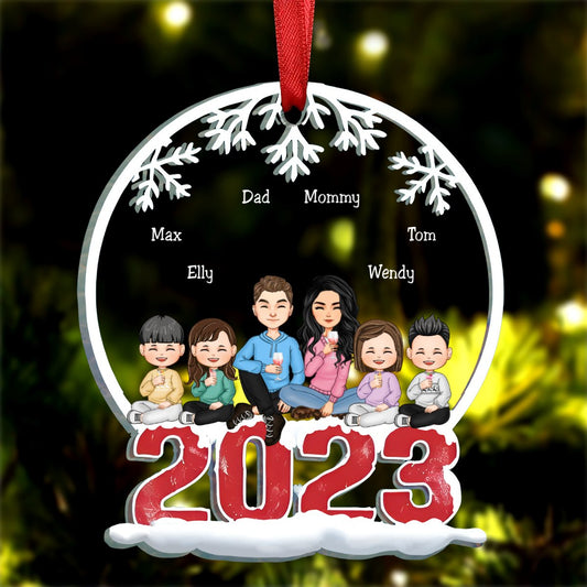 Family - Family Sitting Together - Personalized Circle Ornament (II)