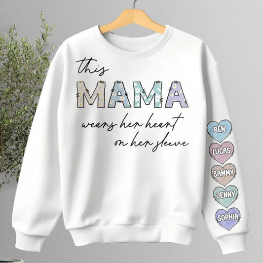 Family - This Mama Wear Her Heart On Her Sleeve - Personalized Sweater
