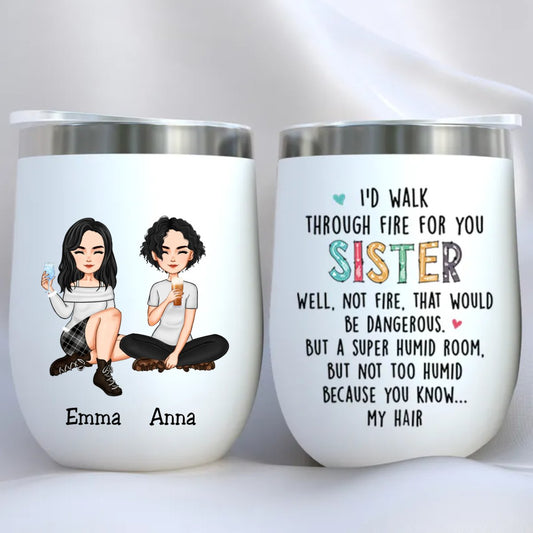Sisters - I'd Walk Through Fire For You Sisters - Personalized Wine Tumbler (TB)