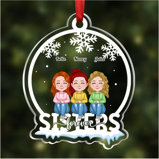 Sisters - Sisters Forever - Personalized Christmas Transparent Ornament (Ver 3)