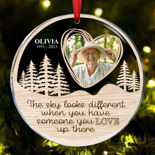 Family - Custom Photo The Sky Looks Different - Personalized Acrylic Circle Ornament