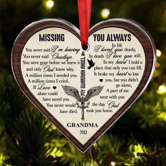 Family - Missing You Always Angel Wings Memorial Gift - Personalized Heart Ornament
