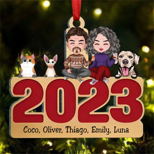 Pet Lovers - Happy Pawlidays Funny Cartoon Dogs Cats - Personalized Acrylic Ornament