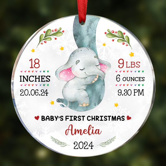 Family - Elephant Baby First Christmas - Personalized Acrylic Ornament