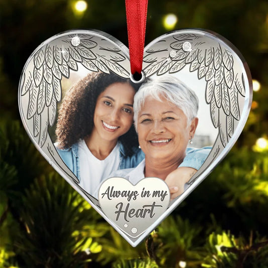Family - Always in my heart - Personalized Custom Photo Heart Ornament