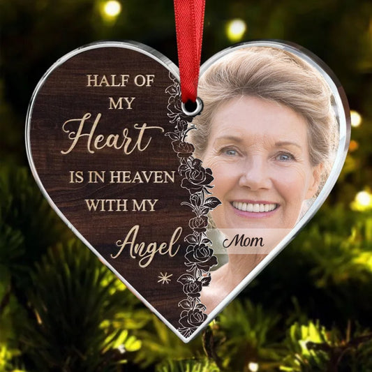 Memorial - Haft Of My Heart Is In Heaven With My Angel - Personalized Heart Ornament