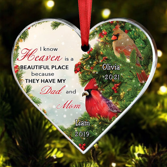 Family - I Know Heaven Is A Beautiful Place - Personalized Heart Ornament
