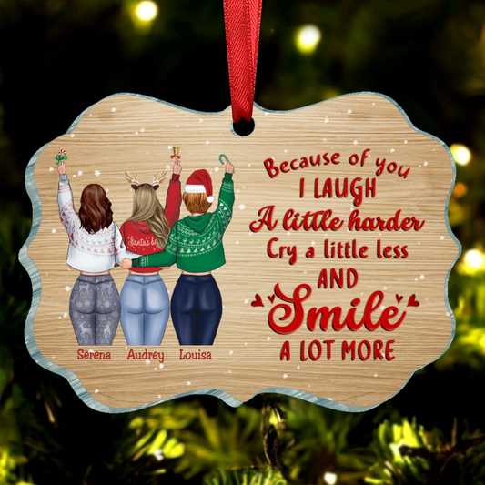 Besties - Because Of You I Laugh A Little Harder Cry A Little Less And Smile A Lot More - Personalized Acrylic Ornament