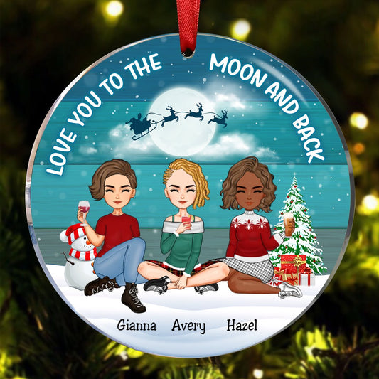Besties - Love You To The Moon And Back - Personalized Circle Ornament