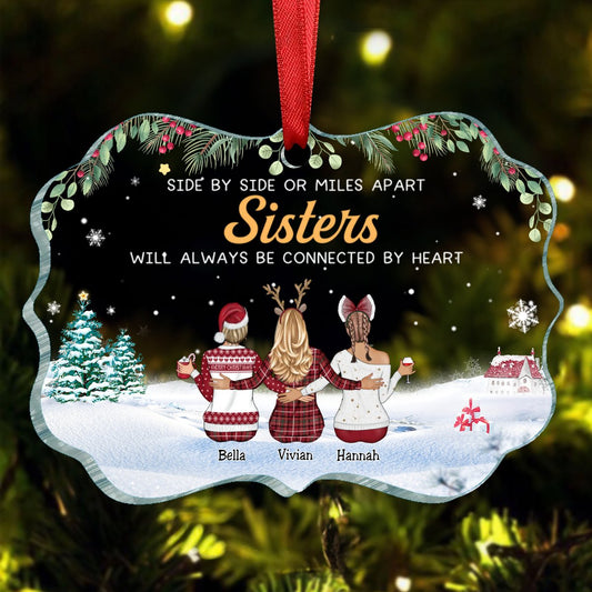 Sisters - Side By Side Or Miles Apart Sisters Will Always Be Connected By Heart - Personalized Acrylic Ornament